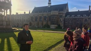 We aim to give you a feel for Cambridge’s most iconic spots, as well as some places off the beaten track. We begin inside the Round Church, one of Cambridge’s quirkiest and oldest buildings, and typically see the River Cam, Newton’s apple tree, Great St Mary’s (the university church), the Senate House (where students graduate), the Corpus Clock, The Eagle pub, Cambridge’s oldest building, and the Old Cavendish Laboratory. We admire the magnificent exteriors of St John’s, Trinity and King’s Colleges. While we cannot guarantee college entrance on any given day, most tours also enter 1-2 colleges to admire their beautiful courts and chapels.